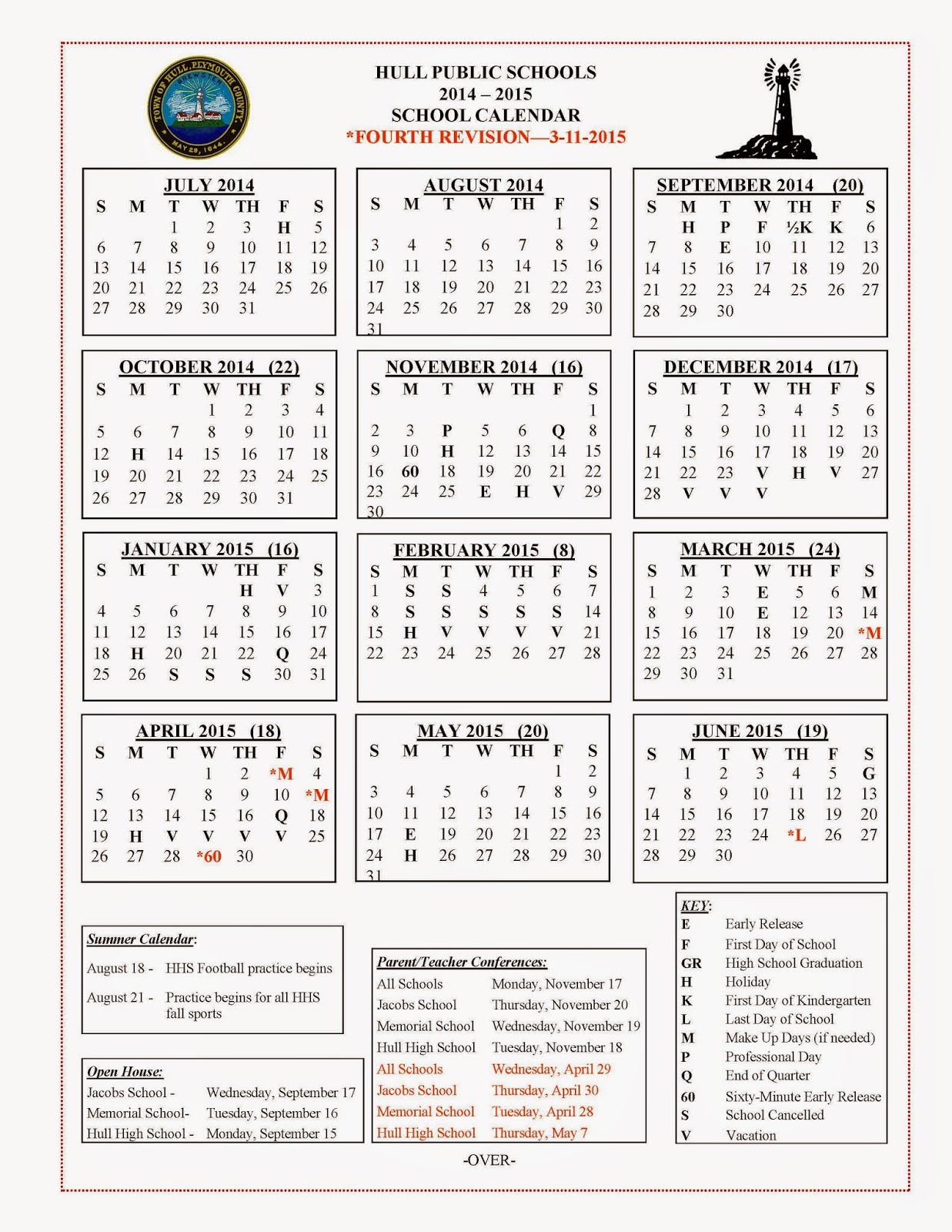 School Calendar FOURTH GRADE WITH MRS. STEINWAND
