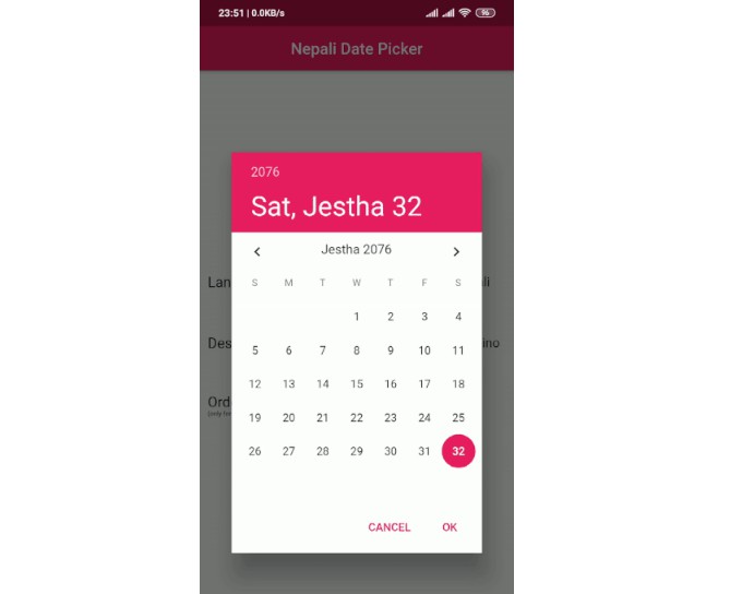 Material Style Date Picker with Bikram Sambat(Nepali) Calendar Support