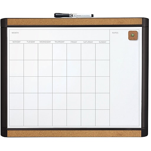 Dry Erase Board Calendar Black 11X17 In W/Cork Strip