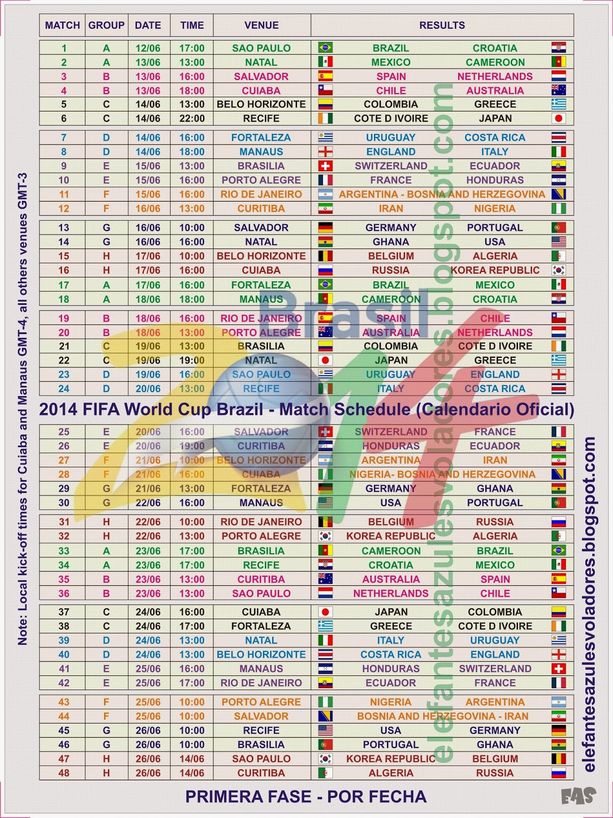 Elefantes Azules Voladores CALENDARIO OFICIAL DE LA COPA MUNDIAL DE
