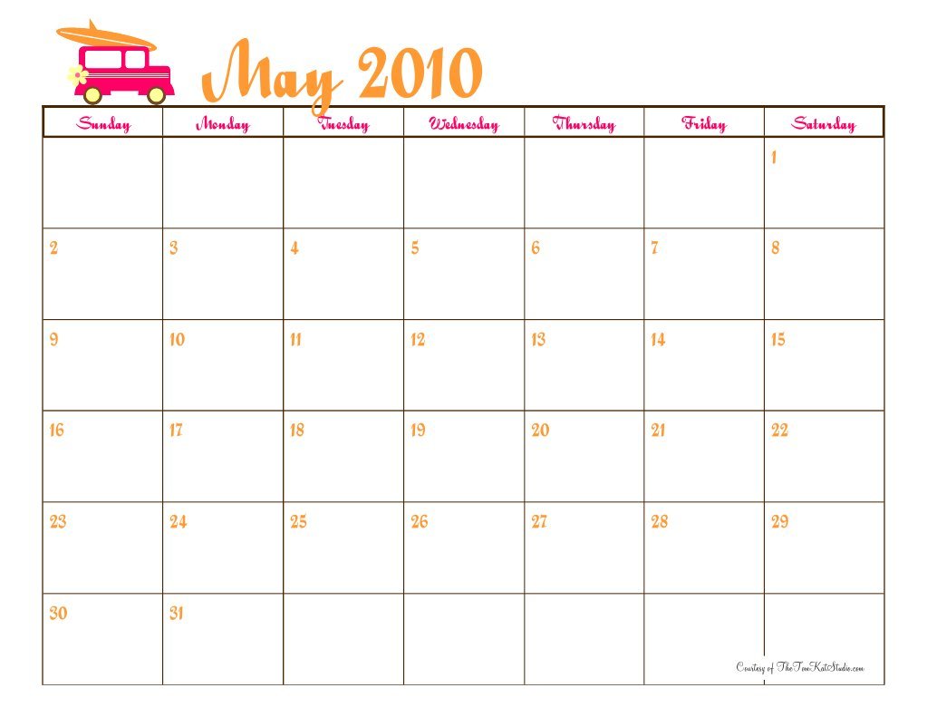 Printable May 2010 Calendar The TomKat Studio