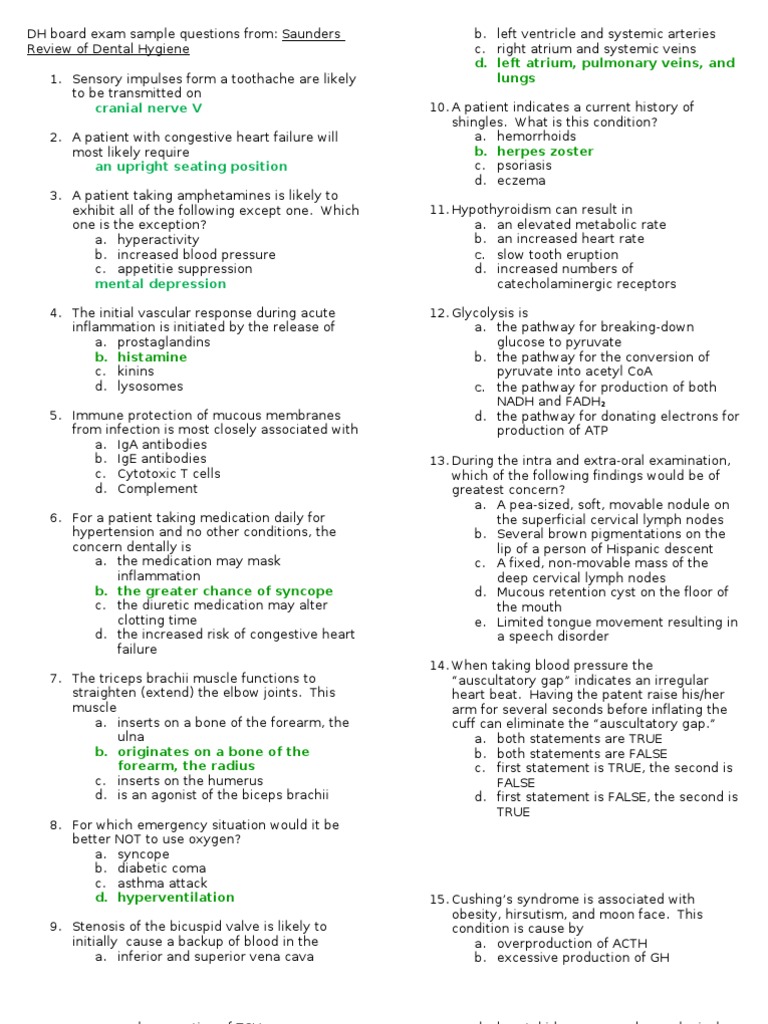 Dental Hygiene Board Exam Sample Questions PDF Heart Immune System