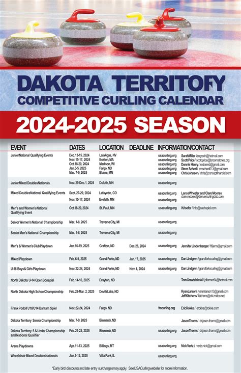 Calendar DAKOTA TERRITORY CURLING ASSOCIATION