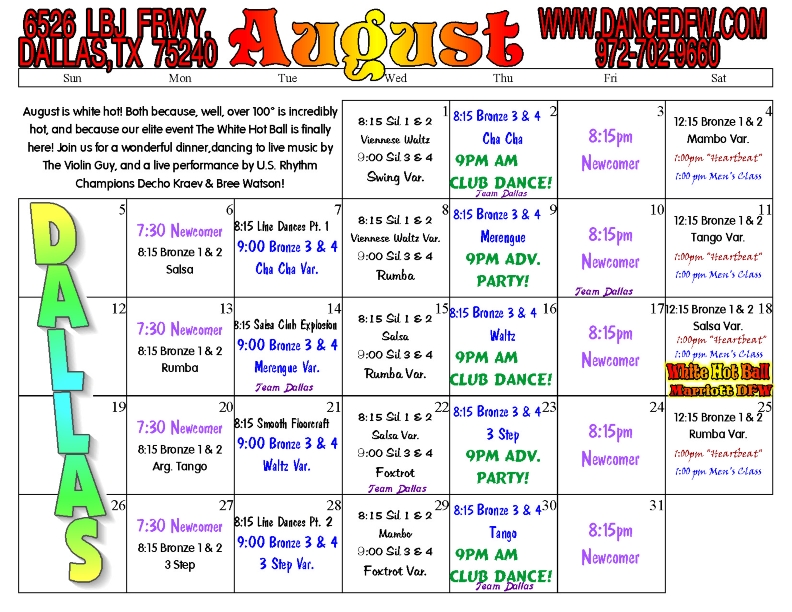 Arthur Murray Dance Studio of Dallas & Plano August Calendar of Events