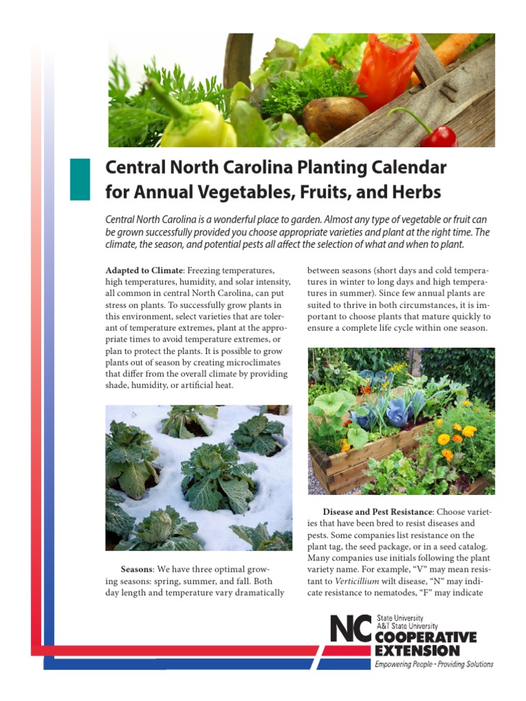 Central North Carolina Planting Calendar for Annual Vegetables Fruits