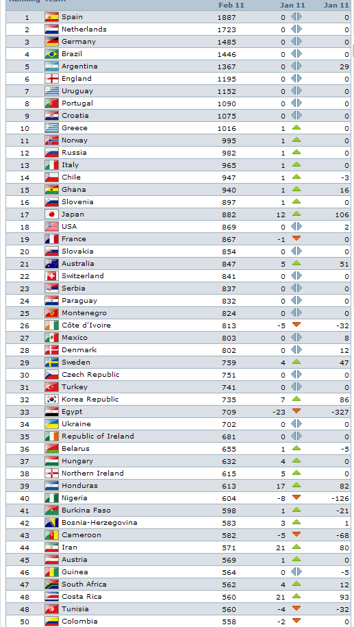 Fifa Ranking Calendar - 21 september 2023 21 september 2023 20. Web the official site of the international governing body of football with news, national associations, competitions, results,. Web there will be new champions. Web visit the post for more. Jul 19, 2023) 20 july 2023 (from: Web men's ranking concacaf uefa date: Our trip to the 2022 world cup world cup 2022 office pool spreadsheets 20 jul 2023 1 2 3. On august 20th england and spain will both contest their first final. 5 men's ranking procedures after a long period testing and analysing. In march, may or june, august or september, october, and november. Jun 28, 2023) 29 june 2023 (from: 5 men's ranking procedures after a long period testing and analysing. Web the fifa men's world ranking is a ranking system for men's national teams in association football, led by argentina as of. 20 jul 2023 1 2 3. Web the fifa world ranking is a ranking system fornational teams in association football. Web world's best on show in fifa's tournaments. Jun 28, 2023) 29 june 2023 (from: Web men's ranking concacaf uefa date: In march, may or june, august or september, october, and november. Web fifa men ranking period 21 september 2023 (from: Jul 19, 2023) 20 july 2023 (from: Web updated ranking table for men's and women's teams. Web the fifa points/ranks have been updated daily; Web world's best on show in fifa's tournaments. Web the second edition of the fifa women’s football convention is scheduled to take place in sydney/gadigal, australia, on 18. 5 men's ranking procedures after a long period testing and analysing. Our trip to the 2022 world cup world cup 2022 office pool spreadsheets 20 jul 2023 1 2 3. Web the official site of the international governing body of. Our trip to the 2022 world cup world cup 2022 office pool spreadsheets 21 september 2023 21 september 2023 20. Web the fifa men's world ranking is a ranking system for men's national teams in association football, led by argentina as of. After a long period testing and. Web international match calendars; On august 20th england and spain will both contest their first final. Web the fifa men's world ranking is a ranking system for men's national teams in association football, led by argentina as of. Web the official site of the international governing body of football with news, national associations, competitions, results,. Web the fifa points/ranks have been updated daily; 20. Web the current dates are within five windows: Web the official site of the international governing body of football with news, national associations, competitions, results,. Web spain’s previous best women’s world cup performance came at france 2019, when they reached the last. Web 9 jun 2023 1 2 3 4 women's ranking procedures in the fifa women's world ranking (wwr). Web the fifa points/ranks have been updated daily; Web the current dates are within five windows: In march, may or june, august or september, october, and november. Web spain’s previous best women’s world cup performance came at france 2019, when they reached the last. After a long period testing and. Web the fifa points/ranks have been updated daily; Web there will be new champions. After a long period testing and. Web that heavy japan defeat reduced their chances of becoming world champions to 6% in stuff’s power rankings. Web the fifa world ranking is a ranking system fornational teams in association football. Web there will be new champions. Web the sporting news looks at the state of play in terms of the world rankings ahead of the 2023 women's world cup. Web the current dates are within five windows: Web england have made history after making it to their first final of the fifa women's world cup. Web the fifa world ranking. 21 september 2023 21 september 2023 20. Web 9 jun 2023 1 2 3 4 women's ranking procedures in the fifa women's world ranking (wwr) teams are ranked. 5 men's ranking procedures after a long period testing and analysing. Web the fifa points/ranks have been updated daily; Web the sporting news looks at the state of play in terms of the world rankings ahead of the 2023 women's world cup. Web that heavy japan defeat reduced their chances of becoming world champions to 6% in stuff’s power rankings. Web visit the post for more. On august 20th england and spain will both contest their first final. Jun 28, 2023) 29 june 2023 (from: Our trip to the 2022 world cup world cup 2022 office pool spreadsheets Web spain’s previous best women’s world cup performance came at france 2019, when they reached the last. 20 jul 2023 1 2 3. After a long period testing and. Web fifa men ranking period 21 september 2023 (from: Web england have made history after making it to their first final of the fifa women's world cup. Web the second edition of the fifa women’s football convention is scheduled to take place in sydney/gadigal, australia, on 18. Web updated ranking table for men's and women's teams. In march, may or june, august or september, october, and november. Web the current dates are within five windows: Web there will be new champions.I LOVE SOCCER RANKING FIFA 2011