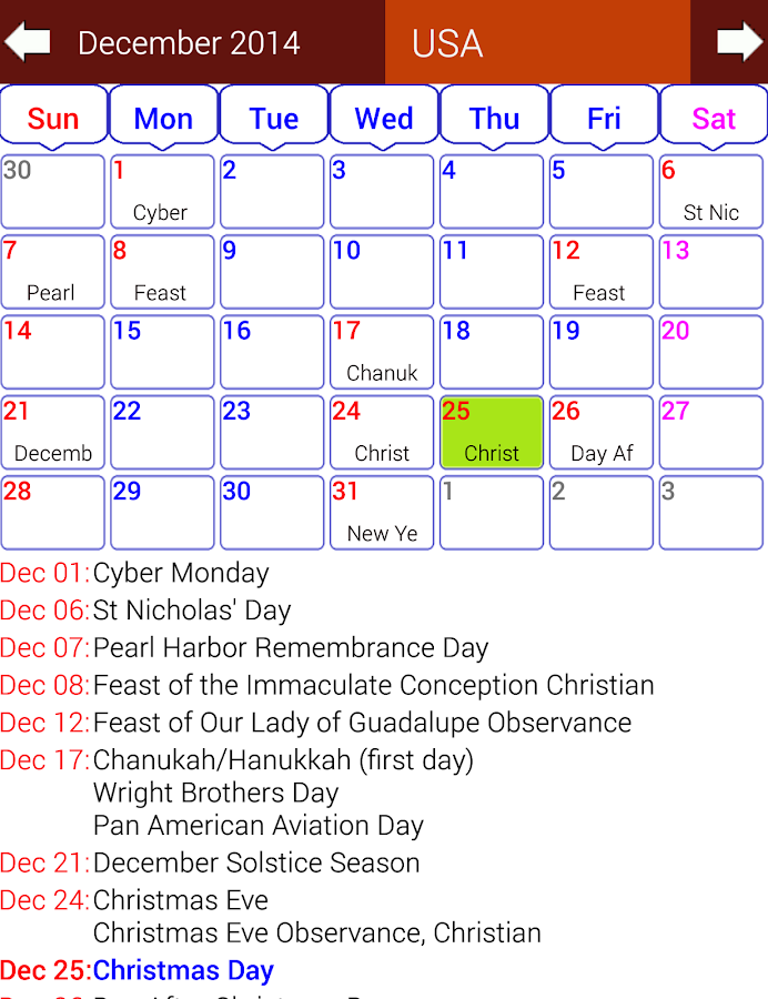 Holiday Calendar Free Android Apps on Google Play