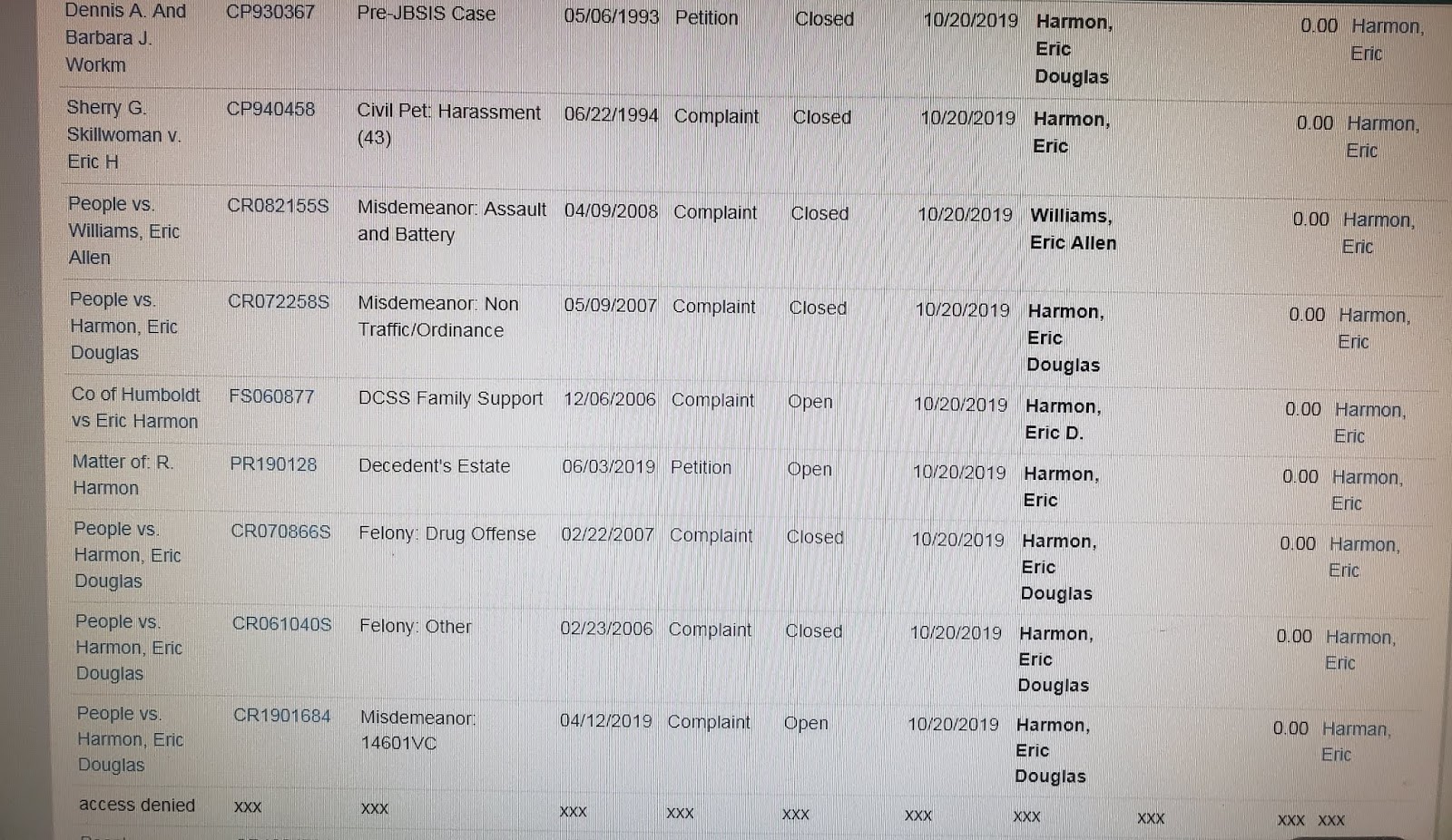 Words Worth Just the listing of Eric Harmon's cases in Humboldt courts