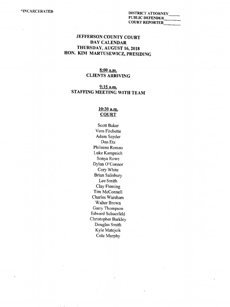 Jefferson County Court Calendar - Court calendars & live stream proceedings Be advised that calendars are subject to change without notice. If your hearing is listed, please see the list below for the zoom meeting information to appear by telephone or virtual meeting if you are choosing to appear. Web calendars are posted approximately four business days prior to the calendar date, and updated by the superior court clerk staff as needed. Web click below for daily calendar lists. If your hearing is listed, please see the list below for the zoom meeting information to appear by telephone or virtual meeting if you are choosing to appear. Web click below for daily calendar lists. Court calendars & live stream proceedings Be advised that calendars are subject to change without notice. Web calendars are posted approximately four business days prior. Web click below for daily calendar lists. Web calendars are posted approximately four business days prior to the calendar date, and updated by the superior court clerk staff as needed. If your hearing is listed, please see the list below for the zoom meeting information to appear by telephone or virtual meeting if you are choosing to appear. Court calendars. Web calendars are posted approximately four business days prior to the calendar date, and updated by the superior court clerk staff as needed. If your hearing is listed, please see the list below for the zoom meeting information to appear by telephone or virtual meeting if you are choosing to appear. Court calendars & live stream proceedings Be advised that. Web click below for daily calendar lists. Court calendars & live stream proceedings If your hearing is listed, please see the list below for the zoom meeting information to appear by telephone or virtual meeting if you are choosing to appear. Web calendars are posted approximately four business days prior to the calendar date, and updated by the superior court. Court calendars & live stream proceedings If your hearing is listed, please see the list below for the zoom meeting information to appear by telephone or virtual meeting if you are choosing to appear. Web calendars are posted approximately four business days prior to the calendar date, and updated by the superior court clerk staff as needed. Web click below. If your hearing is listed, please see the list below for the zoom meeting information to appear by telephone or virtual meeting if you are choosing to appear. Web click below for daily calendar lists. Be advised that calendars are subject to change without notice. Web calendars are posted approximately four business days prior to the calendar date, and updated. Court calendars & live stream proceedings Be advised that calendars are subject to change without notice. If your hearing is listed, please see the list below for the zoom meeting information to appear by telephone or virtual meeting if you are choosing to appear. Web calendars are posted approximately four business days prior to the calendar date, and updated by. Web calendars are posted approximately four business days prior to the calendar date, and updated by the superior court clerk staff as needed. Court calendars & live stream proceedings Be advised that calendars are subject to change without notice. If your hearing is listed, please see the list below for the zoom meeting information to appear by telephone or virtual. Web click below for daily calendar lists. Be advised that calendars are subject to change without notice. Court calendars & live stream proceedings If your hearing is listed, please see the list below for the zoom meeting information to appear by telephone or virtual meeting if you are choosing to appear. Web calendars are posted approximately four business days prior. Be advised that calendars are subject to change without notice. Court calendars & live stream proceedings Web click below for daily calendar lists. Web calendars are posted approximately four business days prior to the calendar date, and updated by the superior court clerk staff as needed. If your hearing is listed, please see the list below for the zoom meeting. Web click below for daily calendar lists. Web calendars are posted approximately four business days prior to the calendar date, and updated by the superior court clerk staff as needed. Court calendars & live stream proceedings If your hearing is listed, please see the list below for the zoom meeting information to appear by telephone or virtual meeting if you are choosing to appear. Be advised that calendars are subject to change without notice.Jefferson County Court calendar Aug. 16, 2018