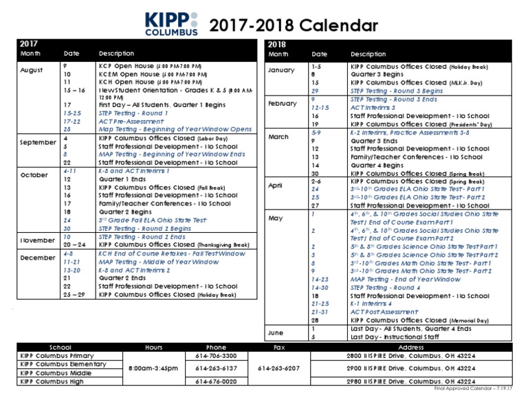 KIPP Columbus 20172018 Calendar Ohio State University Test