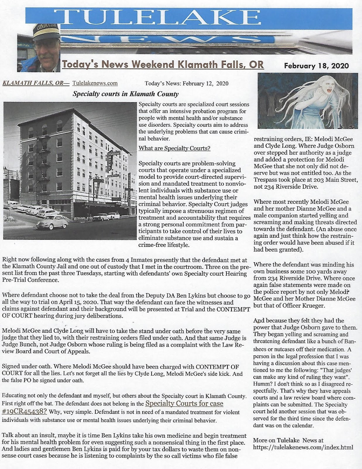 Specialty courts in Klamath County No Deal for Defendant in case 19CR45438