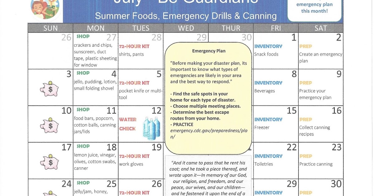 Prepared LDS Family July 2016 Emergency Prep Calendar