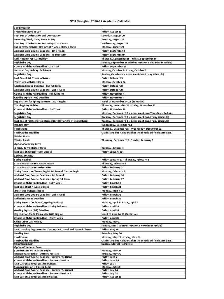 Nyu Shanghai Academic Calendar