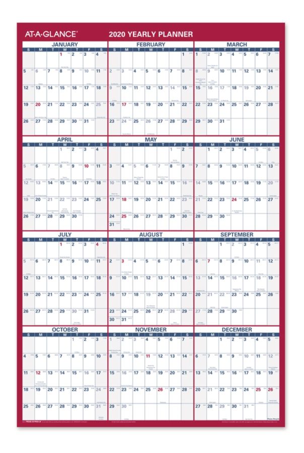 ATAGLANCE Vertical/Horizontal Reversible Erasable Yearly Wall