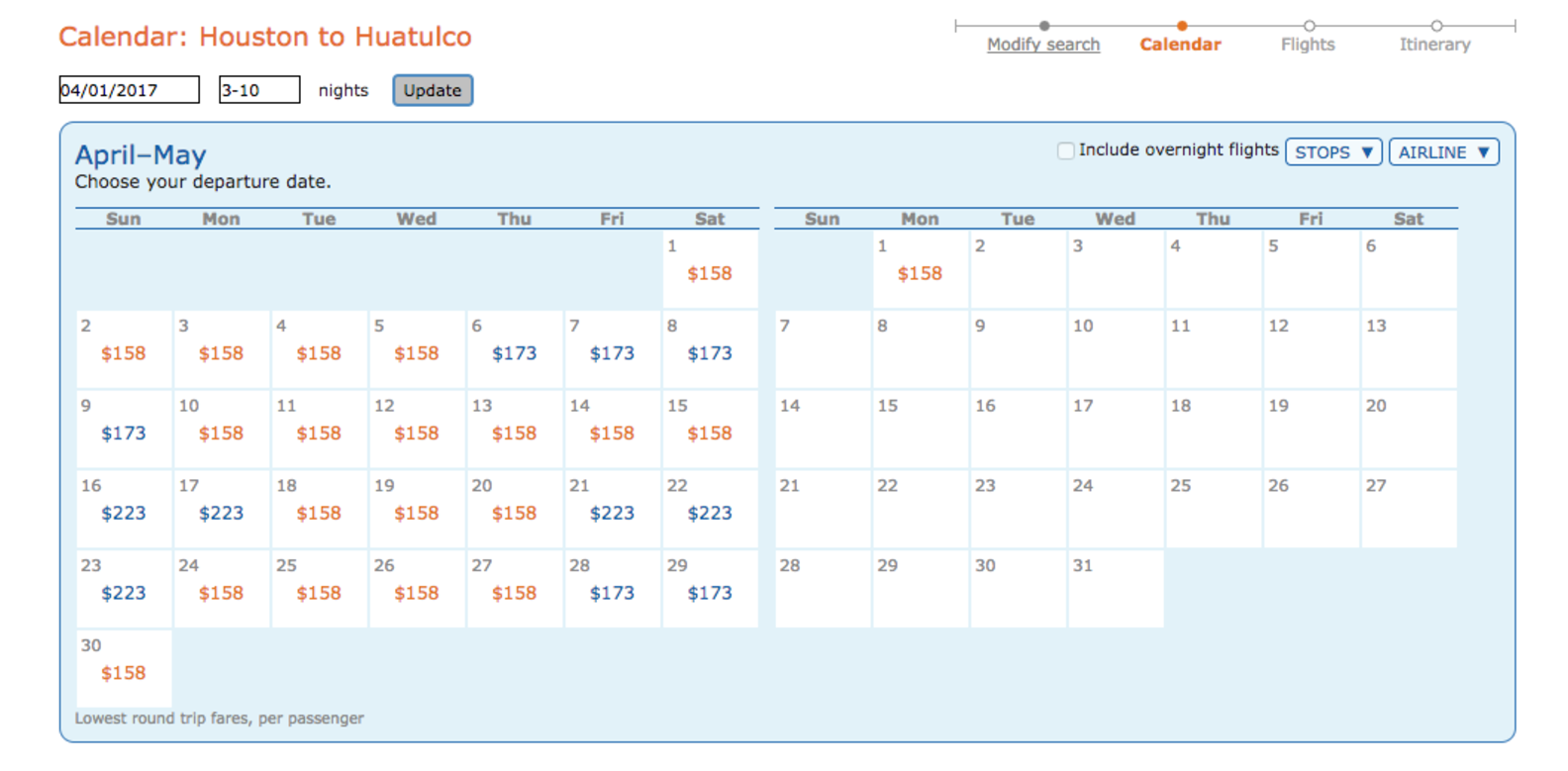 Orbitz Low Fare Calendar