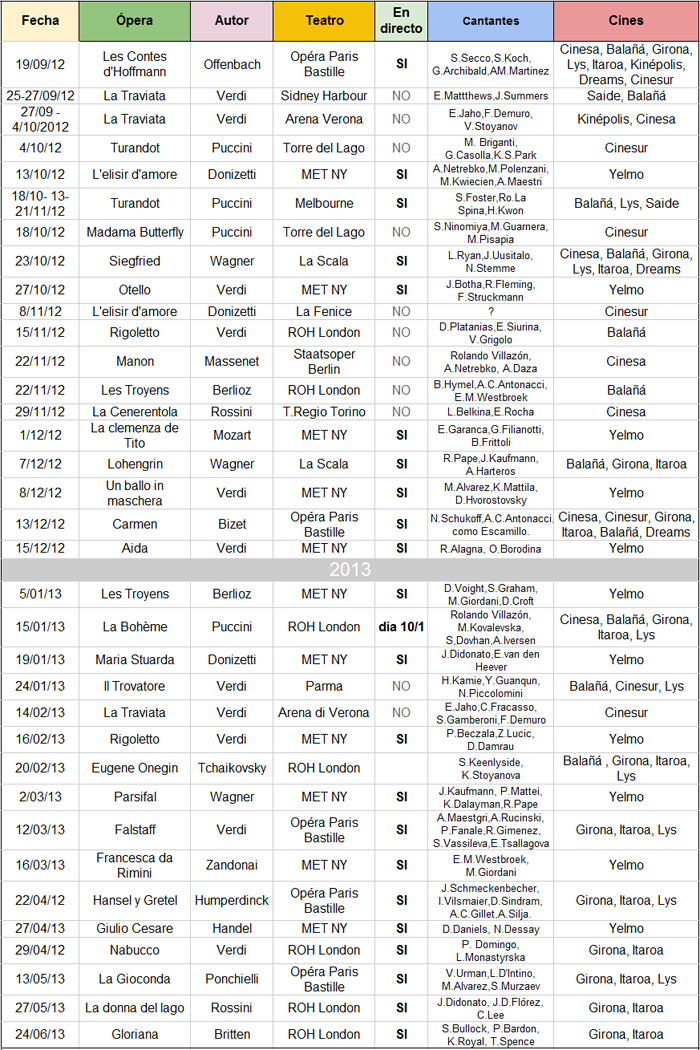 NOVEDAD CALENDARIO PROGRAMACIÓN ÓPERA EN CINES