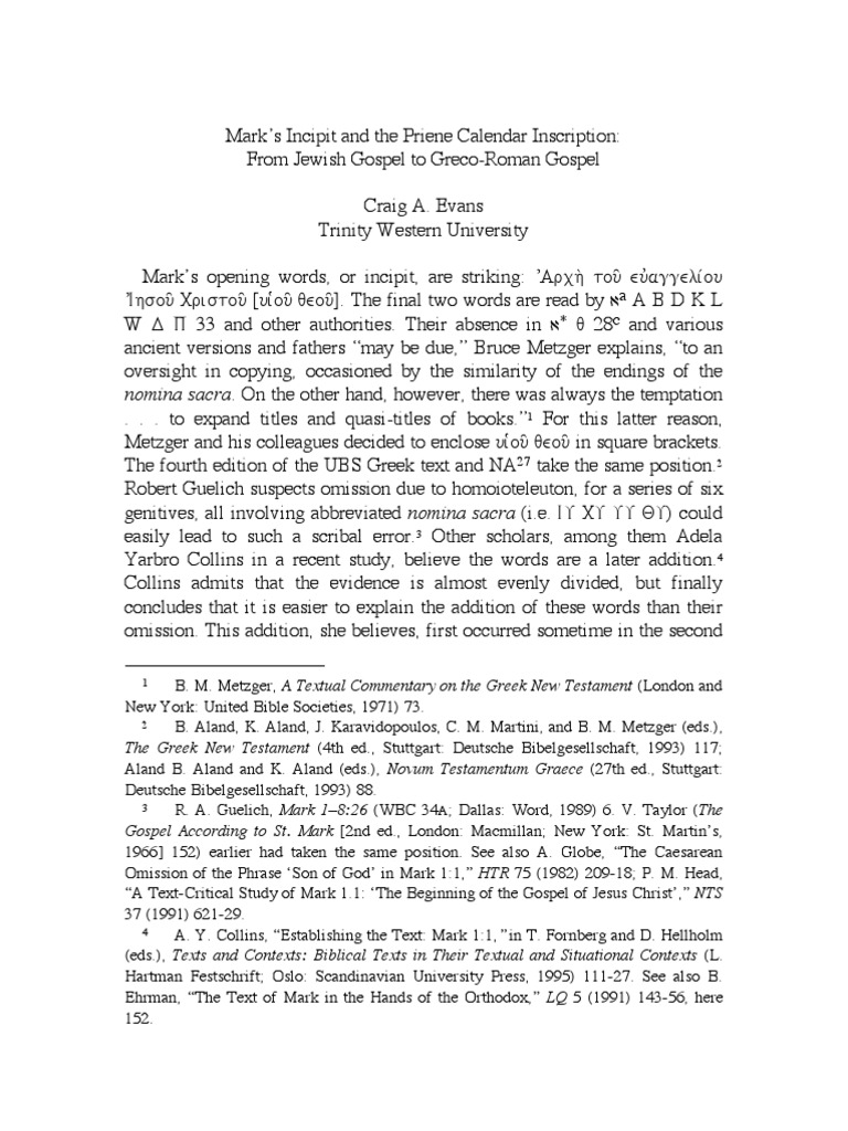 Mark's Incipit and Priene's Calendar Inscription by Craig Evans