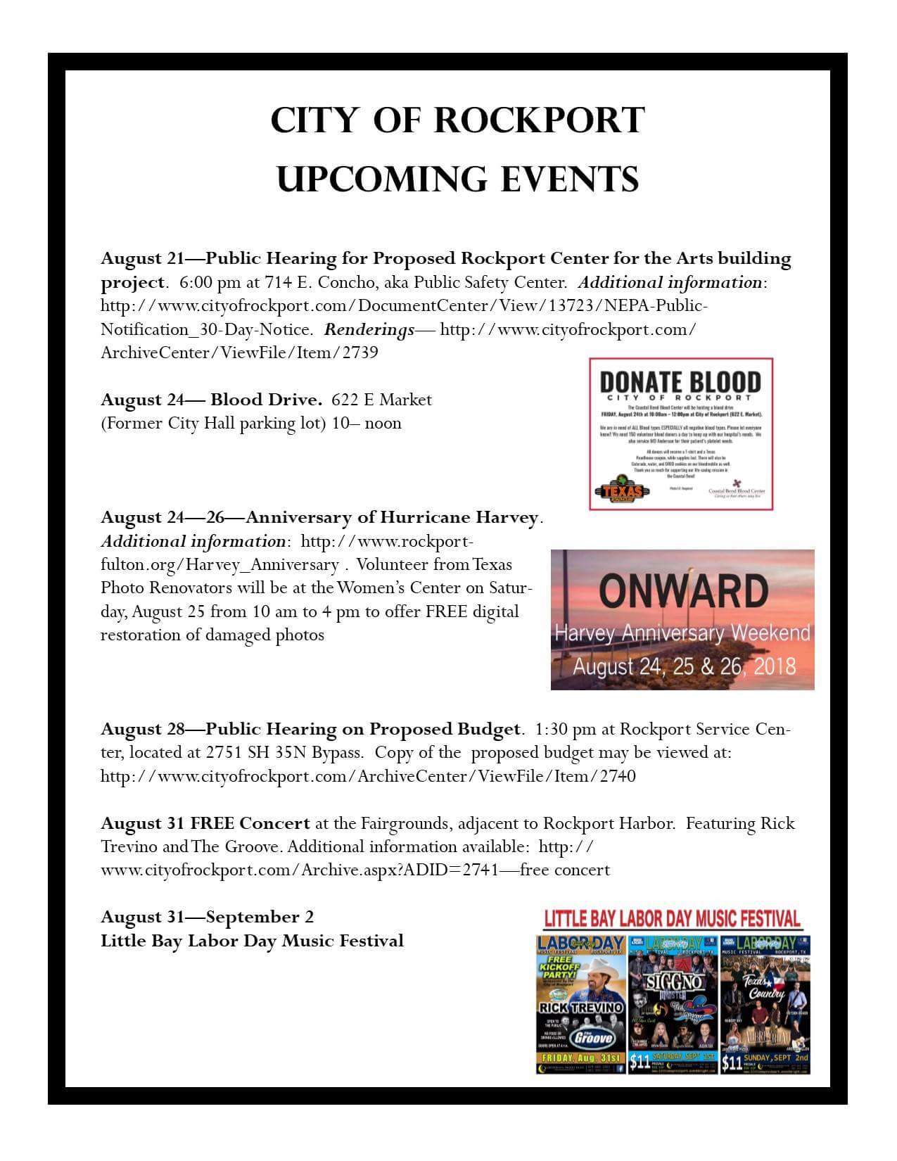 Rockport Tx Calendar Of Events - Web about rockport city government departments i want to home calendar calendar view all calendars is the default. Web the art rockport art center is a place of intersection where creators, cultures and communities meet and share creativity on. Web aransas county history center. The city of rockport is known for its special events through the year, which include: Web january rockport gospel music festival winter texan appreciation day february bountiful bowl clay expo biennial quilt. A great place to buy local produce as well as jams,. 2,813 likes · 213 talking about this · 200 were here. Explore various shows, cultural activities, festivals or concerts. Web book online test auto care all posts 4th of july aransas county aransas county navagation district aransas bay aransas county history. Web rockport downtown farmers market, rockport, texas. Check out food & drink to try the many tastes that rockport and. Whether you're a local, new in town or just cruising through we've got. Web rockport downtown farmers market, rockport, texas. 2023 gun raffle calendar sales. Web may 2023 events scheduled in rockport and fulton texas. Web things to do in rockport, tx, united states. Saturday may 20, 2023 sunday aug 20,. You'll find some fun activities for everyone to enjoy. Looking for things to do in rockport? At the event, you’ll see works from more than 120. Web may 2023 events scheduled in rockport and fulton texas. Web if you’re in rockport texas and just looking for something to do, be sure to check out the calendar of events at the. Looking for things to do in rockport? Whether you're a local, new in town or just cruising through we've got. 2023 gun raffle calendar sales. Web book online test auto care all posts 4th of july aransas county aransas county navagation district aransas bay aransas county history. From art exhibitions and demonstrations to film, food and wine. Web many of them have a coastal theme, while others simply celebrate the artists who have made rockport their home. Web may 2023 events scheduled in rockport and. Web january rockport gospel music festival winter texan appreciation day february bountiful bowl clay expo biennial quilt. Web fill your calendar with fun all year long. 2023 gun raffle calendar sales. 2,813 likes · 213 talking about this · 200 were here. Web book online test auto care all posts 4th of july aransas county aransas county navagation district aransas. From art exhibitions and demonstrations to film, food and wine. Web may 2023 events scheduled in rockport and fulton texas. Whether you're a local, new in town or just cruising through we've got. Web things to do in rockport, tx, united states. The city of rockport is known for its special events through the year, which include: Web events calendar annual events hummerbird celebration seafair festival monthly events rock solid gun raffle calendar Looking for things to do in rockport? Explore various shows, cultural activities, festivals or concerts. Web catch our favorite bands at the local markets and annual festivals! A great place to buy local produce as well as jams,. Web catch our favorite bands at the local markets and annual festivals! Whether you're a local, new in town or just cruising through we've got. At the event, you’ll see works from more than 120. Web fill your calendar with fun all year long. Web about rockport city government departments i want to home calendar calendar view all calendars is. Web january rockport gospel music festival winter texan appreciation day february bountiful bowl clay expo biennial quilt. Saturday may 20, 2023 sunday aug 20,. 2023 gun raffle calendar sales. A great place to buy local produce as well as jams,. Web the art rockport art center is a place of intersection where creators, cultures and communities meet and share creativity. Web may 2023 events scheduled in rockport and fulton texas. At the event, you’ll see works from more than 120. The city of rockport is known for its special events through the year, which include: Web the art rockport art center is a place of intersection where creators, cultures and communities meet and share creativity on. 2,813 likes · 213. 2023 gun raffle calendar sales. Web january rockport gospel music festival winter texan appreciation day february bountiful bowl clay expo biennial quilt. 2,813 likes · 213 talking about this · 200 were here. Web many of them have a coastal theme, while others simply celebrate the artists who have made rockport their home. Web fill your calendar with fun all year long. Web book online test auto care all posts 4th of july aransas county aransas county navagation district aransas bay aransas county history. A great place to buy local produce as well as jams,. From art exhibitions and demonstrations to film, food and wine. Web about rockport city government departments i want to home calendar calendar view all calendars is the default. Check out food & drink to try the many tastes that rockport and. Web the art rockport art center is a place of intersection where creators, cultures and communities meet and share creativity on. Web events calendar annual events hummerbird celebration seafair festival monthly events rock solid gun raffle calendar Web may 2023 events scheduled in rockport and fulton texas. Explore various shows, cultural activities, festivals or concerts. Web if you’re in rockport texas and just looking for something to do, be sure to check out the calendar of events at the. You'll find some fun activities for everyone to enjoy. The city of rockport is known for its special events through the year, which include: At the event, you’ll see works from more than 120. Web things to do in rockport, tx, united states. Whether you're a local, new in town or just cruising through we've got.Rockport Events Aransas County Long Term Recovery