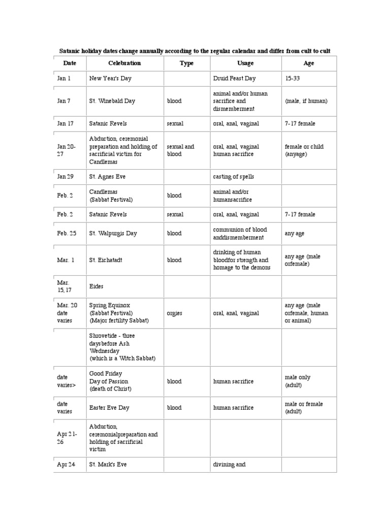Satanic Ritual Calendar Satanic rituals, Satanic calendar, Satan