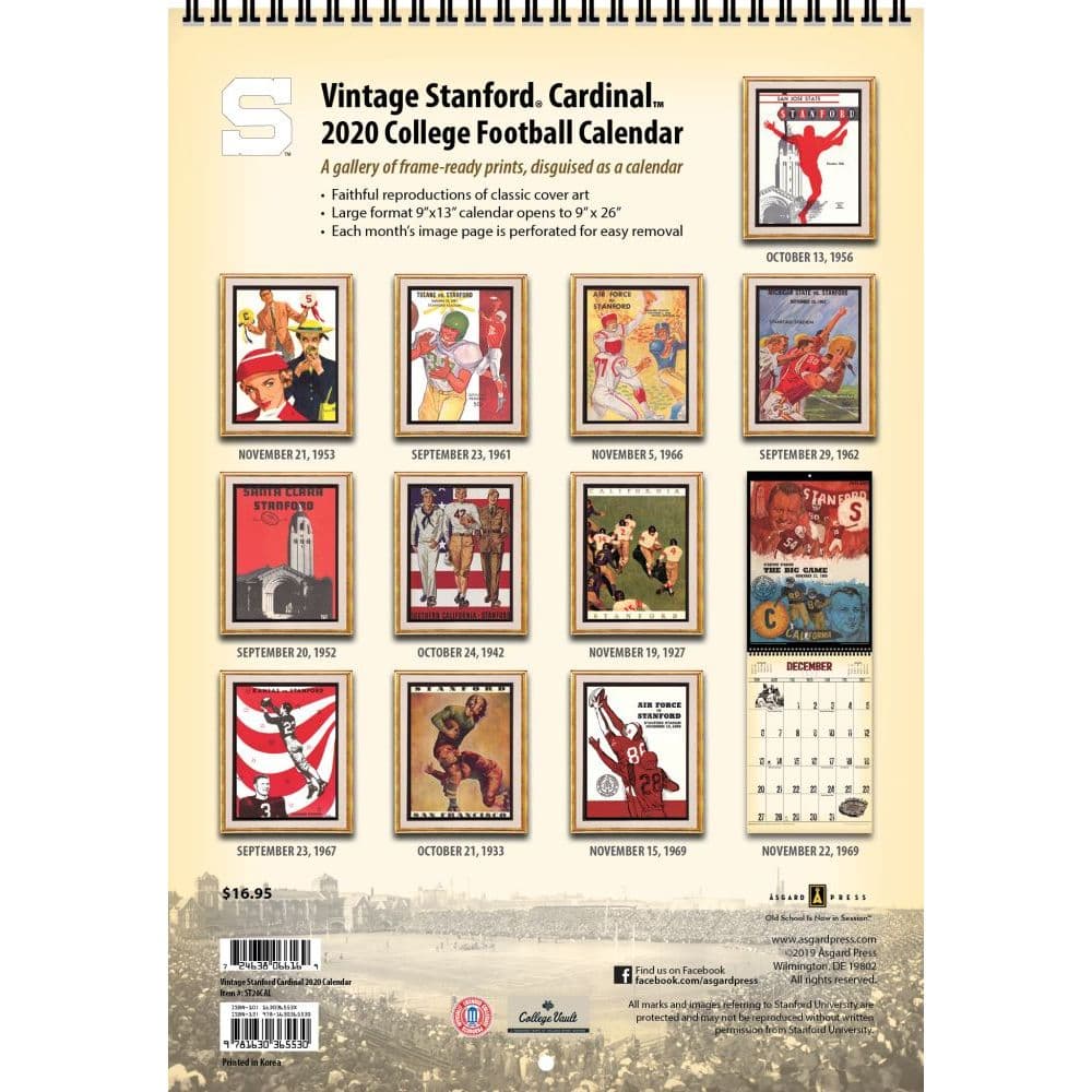 Stanford Vintage Football Wall Calendar