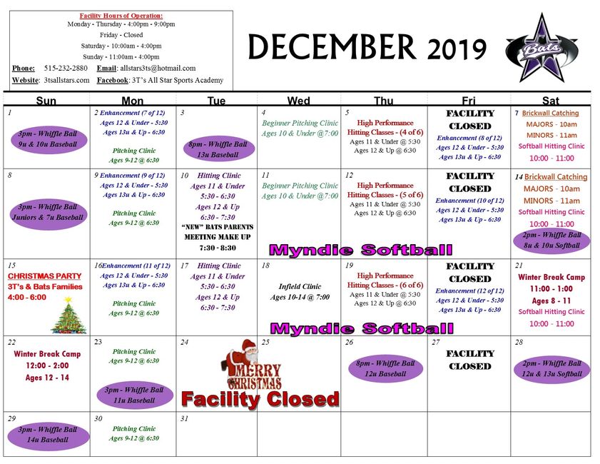 Calendar 3T's All Star Sports Academy