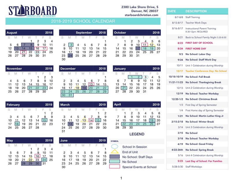 School Calendar Starboard Christian Academy