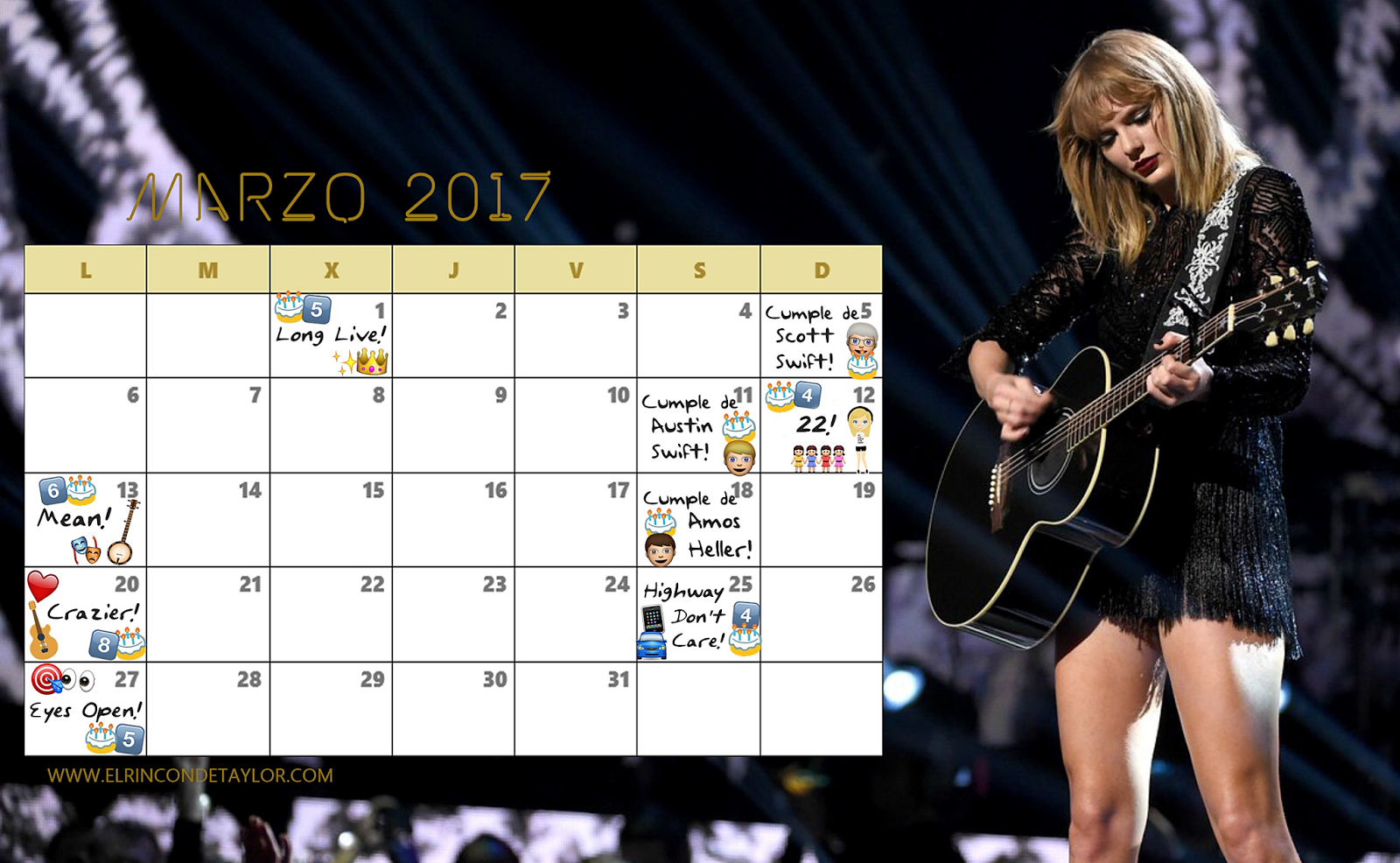 CALENDARIO Marzo 2017 El Rincón de Taylor Todo lo que necesitas