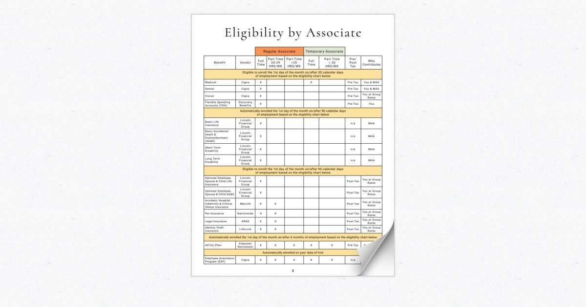 2021 Benefits Eligibility Chart