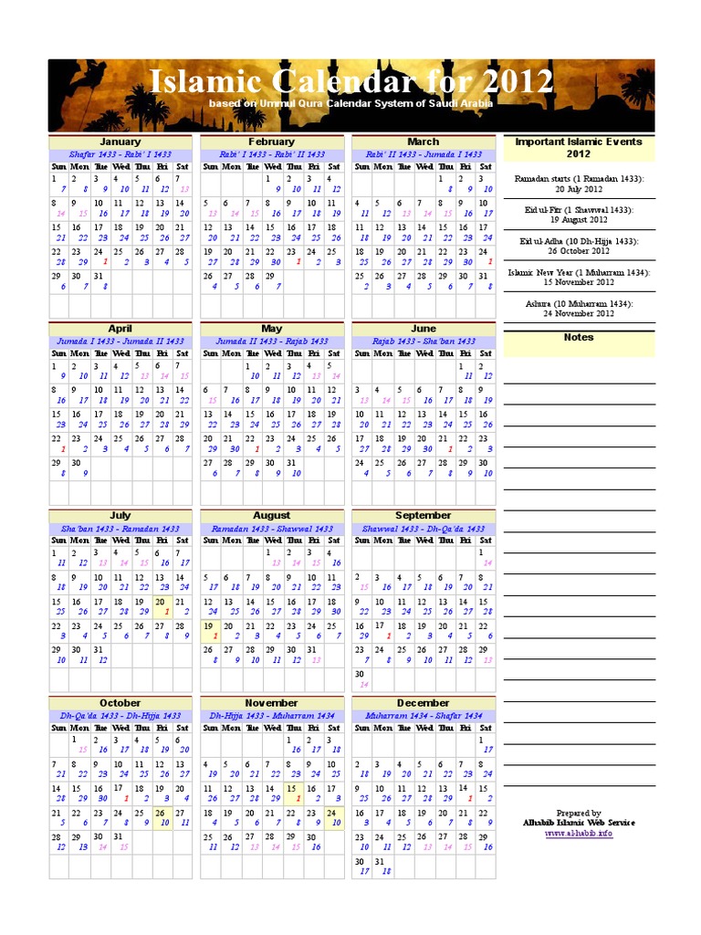 January February March Important Islamic Events 2012 Based On Ummul