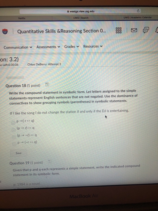 Solved westga.view.usg.edu Netfix UVG Search UWG Academic