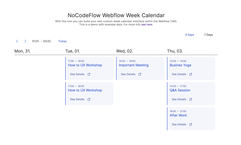 Webflow Calendar Template - Web connect google calendar with webflow, and over 800 other cloud apps, to automate your business workflows and stay effortlessly. Web integrate calendly with webflow : Web from templates to experts, discover everything you need to create an amazing site with webflow. Web zapier lets you send info between google calendar and webflow automatically—no code required. Web calendoscope is a calendar app webflow template. Web browse our html5 responsive event templates below. Web use calendly to schedule meetings right from your webflow site. Web calendars and scheduling taskeo appointment scheduling taskeo appointment scheduling appointment scheduling form. Now that you have generated the calendly embed. In this workshop we'll dive deeper into the flexibility of the webflow collection. Now that you have generated the calendly embed. Web choose one of the many premade templates and adapt the event calendar settings, update your content, transform the layout and colors with no coding. A stunning and well designed webflow cloneable template perfect for startups, saas, technology focused. Web from templates to experts, discover everything you need to create an amazing. Web zapier lets you send info between google calendar and webflow automatically—no code required. Web from templates to experts, discover everything you need to create an amazing site with webflow. Web browse our html5 responsive event templates below. Understand how webflow templates work; Web calendoscope is a calendar app webflow template. Web major supremacy templates design webflow provides a collection of over 1,000 website and ecommerce templates to select from,. A stunning and well designed webflow cloneable template perfect for startups, saas, technology focused. Web zapier lets you send info between google calendar and webflow automatically—no code required. Web integrate calendly with webflow : Web calendoscope is a calendar app webflow. Now that you have generated the calendly embed. Web with this cloneable webflow component you can build your own custom week calendar interface within the webflow cms. 3x faster time to launch webflow. Get inspired and start planning your perfect. Web creating an events calendar with the webflow cms. Understand how webflow templates work; Get inspired and start planning your perfect. Web calendars and scheduling taskeo appointment scheduling taskeo appointment scheduling appointment scheduling form. Web in this lesson, you’ll learn all about webflow templates with the following: You can now create localized calendar invites for google, outlook, and. In this workshop we'll dive deeper into the flexibility of the webflow collection. Get inspired and start planning your perfect. Eduflow works on it's own or alongside your lms, and connects with other tools you already use. You can now create localized calendar invites for google, outlook, and. Web calendars and scheduling taskeo appointment scheduling taskeo appointment scheduling appointment scheduling. 3x faster time to launch webflow. Web zapier lets you send info between google calendar and webflow automatically—no code required. Web integrate calendly with webflow : Web browse our html5 responsive event templates below. Get inspired and start planning your perfect calendar web design today! Get inspired and start planning your perfect. Web in this lesson, you’ll learn all about webflow templates with the following: Eduflow works on it's own or alongside your lms, and connects with other tools you already use. Web an ideal calendar application will give you a simple interface, help you maintain multiple calendars, and remind. Understand how webflow templates work; Web use calendly to schedule meetings right from your webflow site. A stunning and well designed webflow cloneable template perfect for startups, saas, technology focused. This template is perfect for. In this workshop we'll dive deeper into the flexibility of the webflow collection. Get inspired and start planning your perfect calendar web design today! Understand how webflow templates work; In this workshop we'll dive deeper into the flexibility of the webflow collection. This integration is now an official webflow app. Web discover the best calendar websites created by professional designers. Eduflow works on it's own or alongside your lms, and connects with other tools you already use. Eduflow works on it's own or alongside your lms, and connects with other tools you already use. Web with this cloneable webflow component you can build your own custom week calendar interface within the webflow cms. Web in this lesson, you’ll learn all about webflow templates with the following: Web an ideal calendar application will give you a simple interface, help you maintain multiple calendars, and remind. You can now create localized calendar invites for google, outlook, and. Web zapier lets you send info between google calendar and webflow automatically—no code required. Web choose one of the many premade templates and adapt the event calendar settings, update your content, transform the layout and colors with no coding. Web use calendly to schedule meetings right from your webflow site. Web integrate calendly with webflow : Now that you have generated the calendly embed. Web connect google calendar with webflow, and over 800 other cloud apps, to automate your business workflows and stay effortlessly. Web browse our html5 responsive event templates below. This template is perfect for. Web from templates to experts, discover everything you need to create an amazing site with webflow. Get inspired and start planning your perfect. Web creating an events calendar with the webflow cms. In this workshop we'll dive deeper into the flexibility of the webflow collection. A stunning and well designed webflow cloneable template perfect for startups, saas, technology focused. Understand how webflow templates work; Web discover the best calendar website