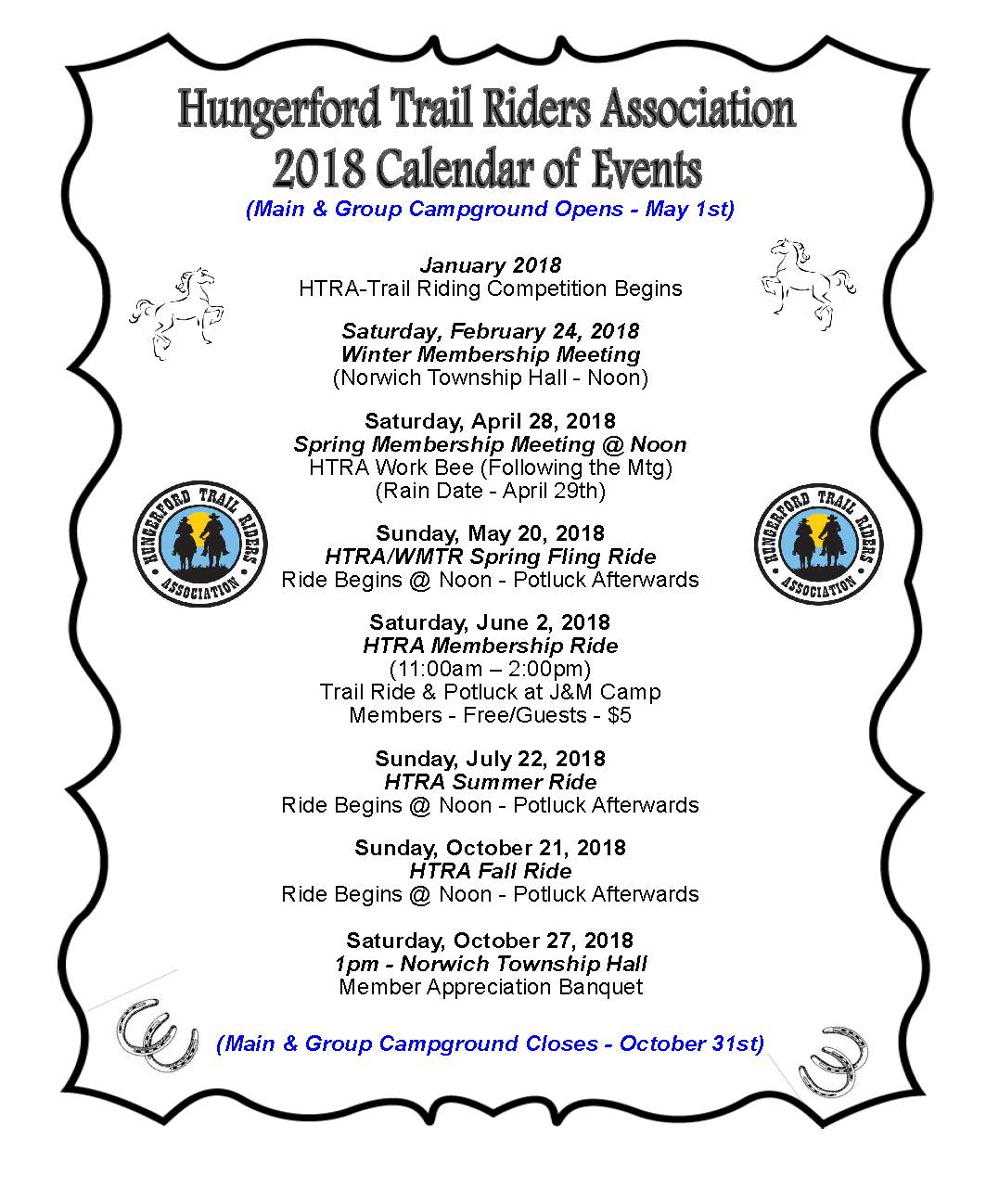 Hungerford Trail Riders Association Calendar of Events